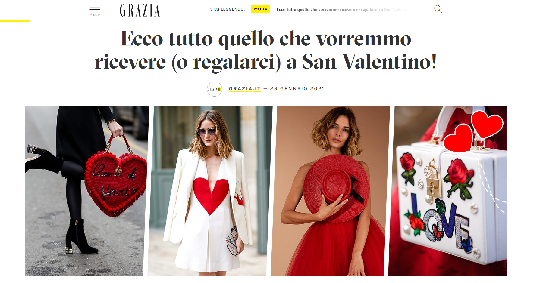 Suggerimenti da dare alla vostra dolce metà alla ricerca del regalo per San Valentino che vi lasci a bocca aperta, o semplicemente volete farvi un regalo per gratificarvi dopo questo inizio anno difficile, allora Grazia saprà darvi il consiglio giusto!