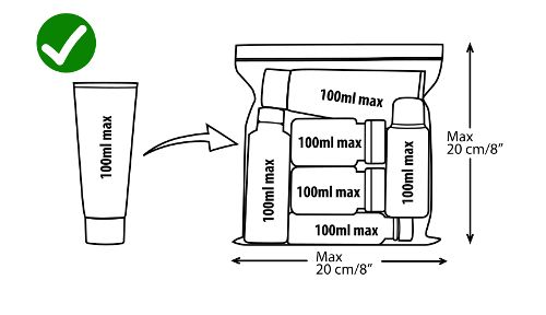 - La busta deve essere presentata separatamente dal bagaglio a mano per essere controllata